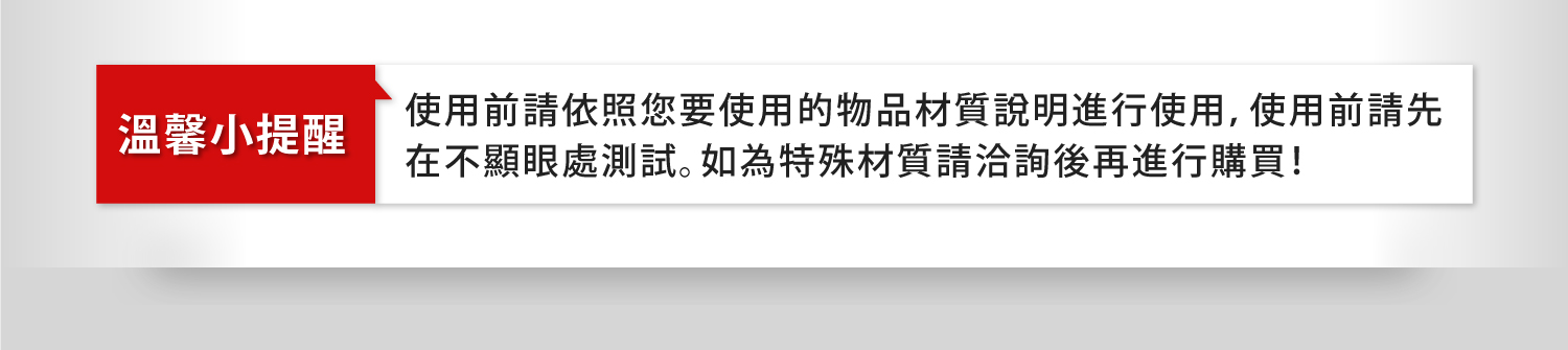 7.請勿使用在鋁或鋅,避免與油氈,鉻鋼,塗有油漆及磨光的表面接觸
